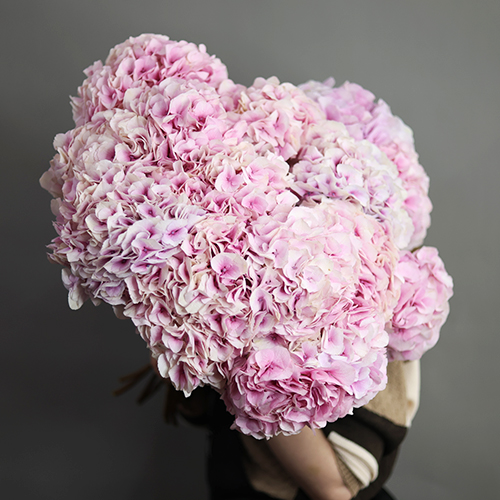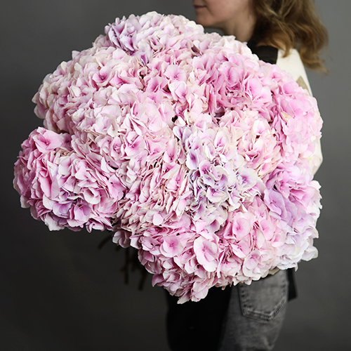Букет "Макарун" из 15 нежных Голландских гортензий